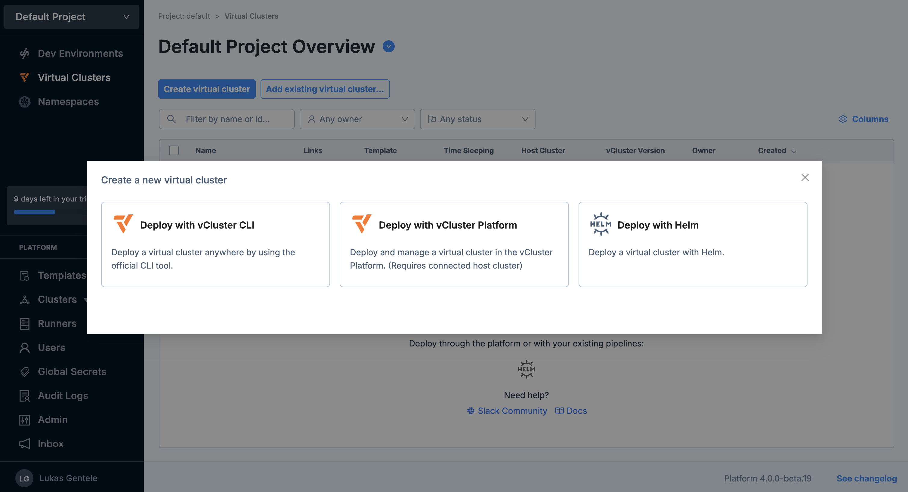 With this major release of the Platform, we’re making it easier than ever to add existing virtual clusters to the Platform without having to change the way you deploy them. With the Platform you can then enable pro features, add authentication via OIDC, inspect vCluster resources via the UI, and more.